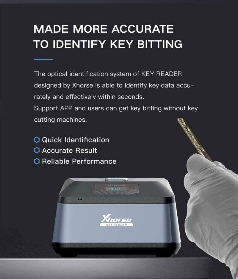 KEY READER is a professional and portable key identification device designed by Xhorse, which is able to identify almost all car and motorcyle keys (including metal, aluminum and plastic keys) quickly and accurately on the market.